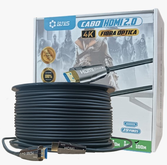 Cabo HDMI 2.0 Fibra ótica 4k Ultra rápido 50 metros - Lotus.